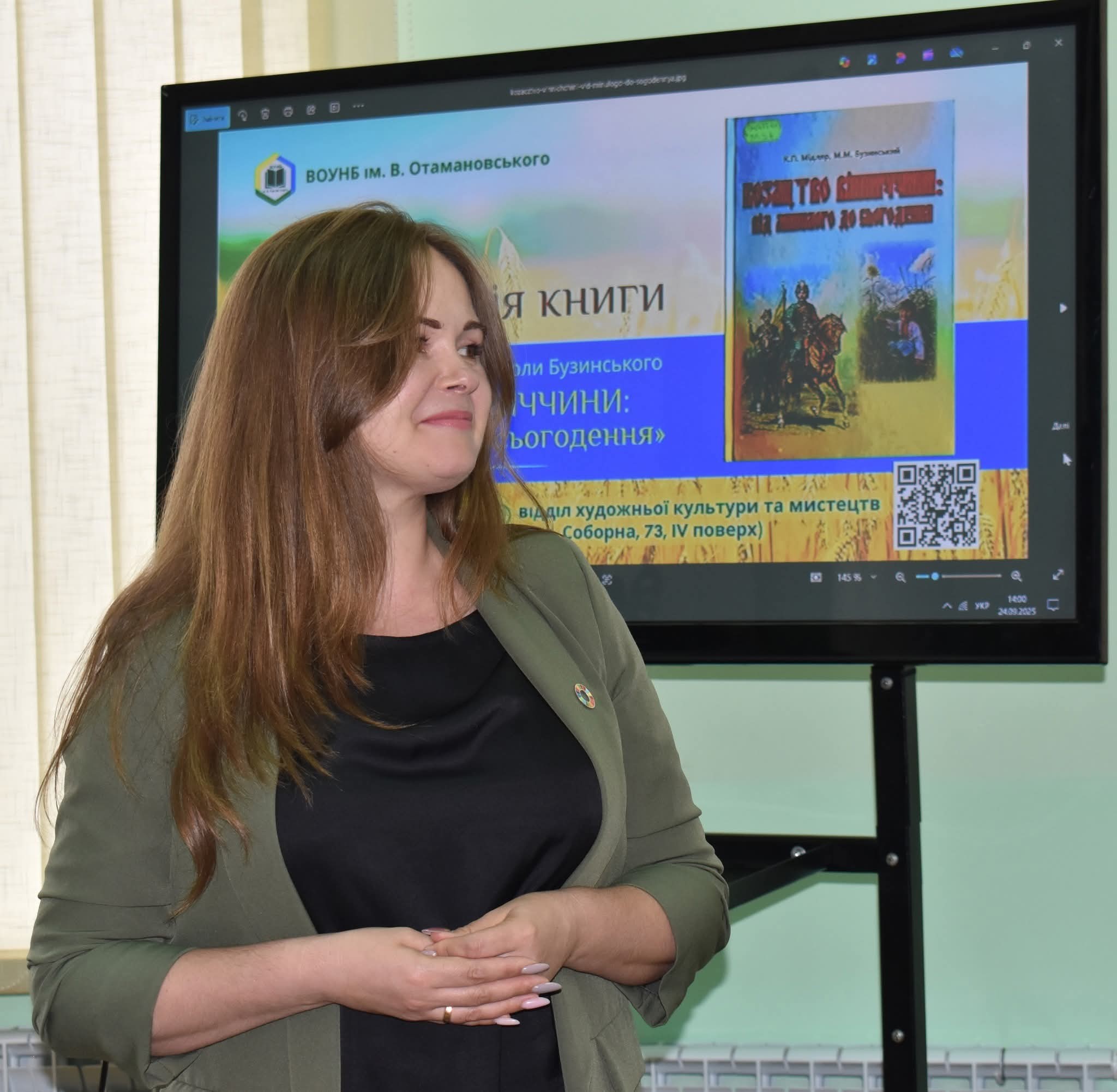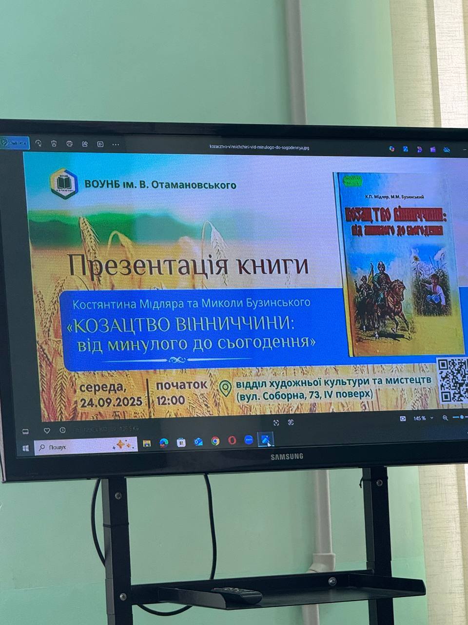 24 вересня 2025 року працівники бібліотеки ВТЕІ ДТЕУ та завідувач кафедри менеджменту та публічного управління Наталя Махначова, кандидат економічних наук, доцент були запрошені на презентацію книги «Козацтво Вінниччини: від минулого до сьогодення. Історія козацтва, статті, поезія» К. П. Мідляра та М. М. Бузинського.