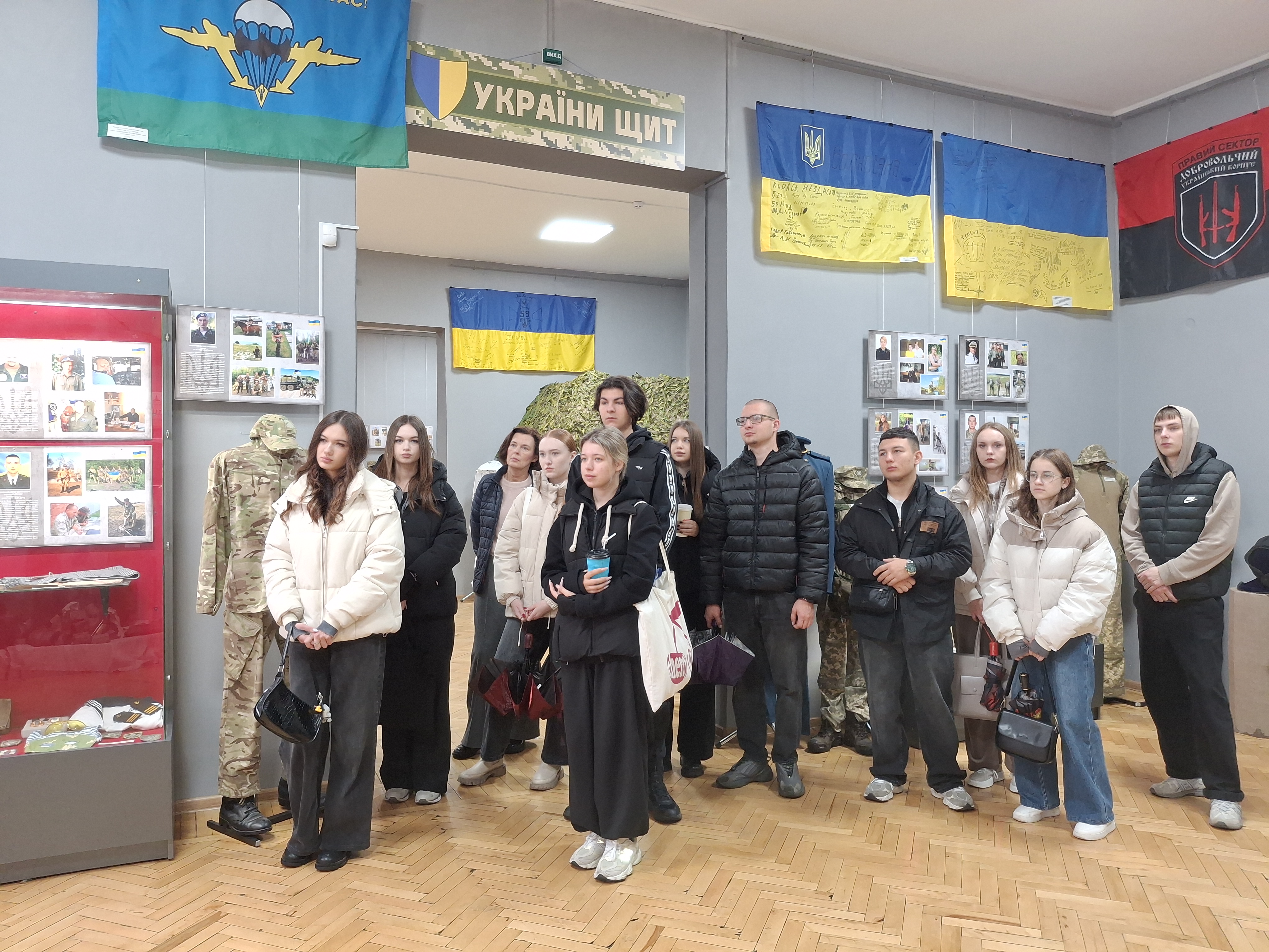 Студенти відвідали патріотичну виставку «УКРАЇНИ ЩИТ», яка приурочена до Дня захисників і захисниць України, присвячена подіям Революції Гідності та російсько-української війни.