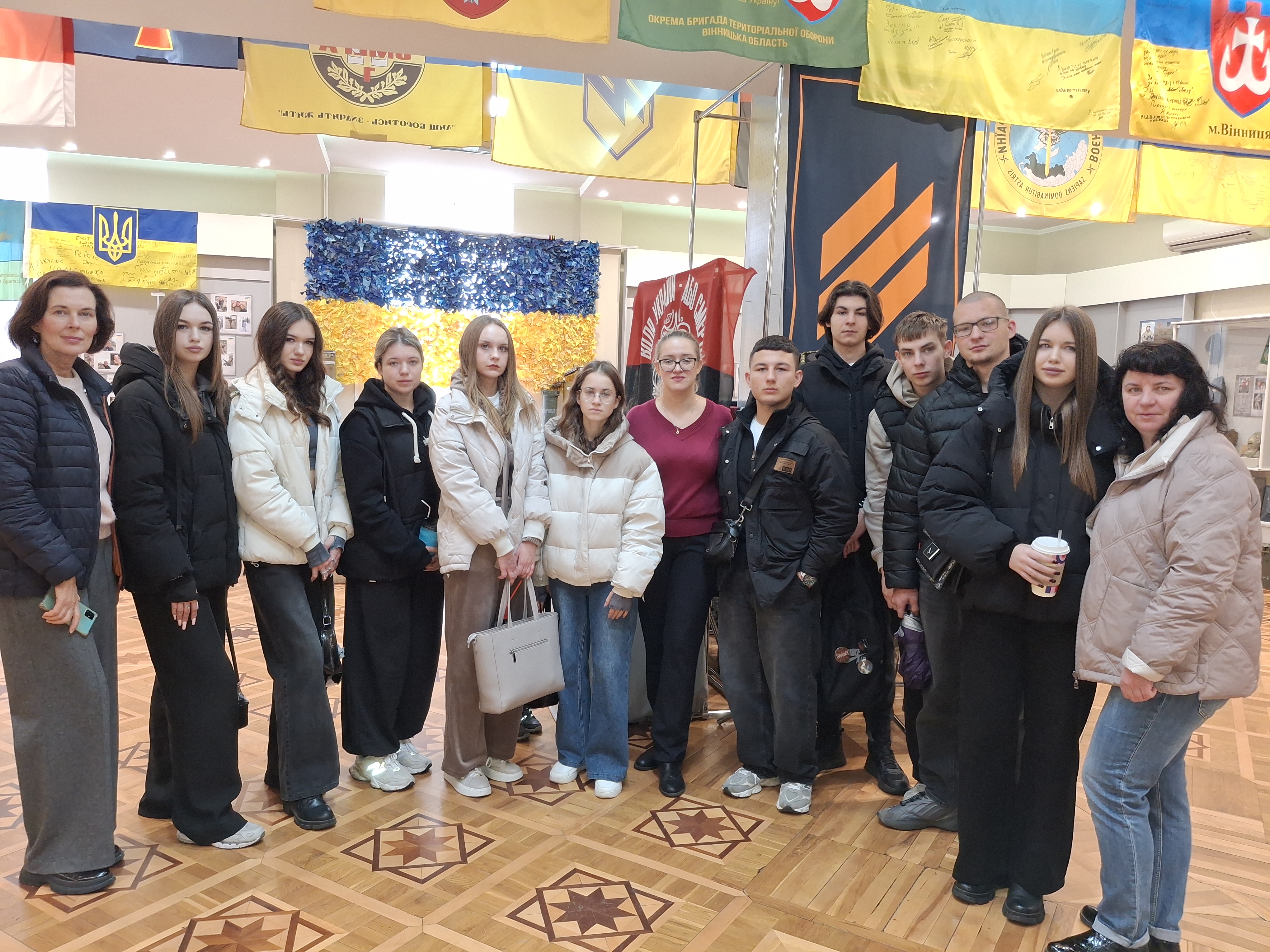 1 жовтня 2025 року співробітники бібліотеки ВТЕІ ДТЕУ з нагоди Дня захисників і захисниць України організували для здобувачів вищої освіти спеціальності «Менеджмент» (групи М-21д) екскурсію до Вінницького обласного краєзнавчого музею.